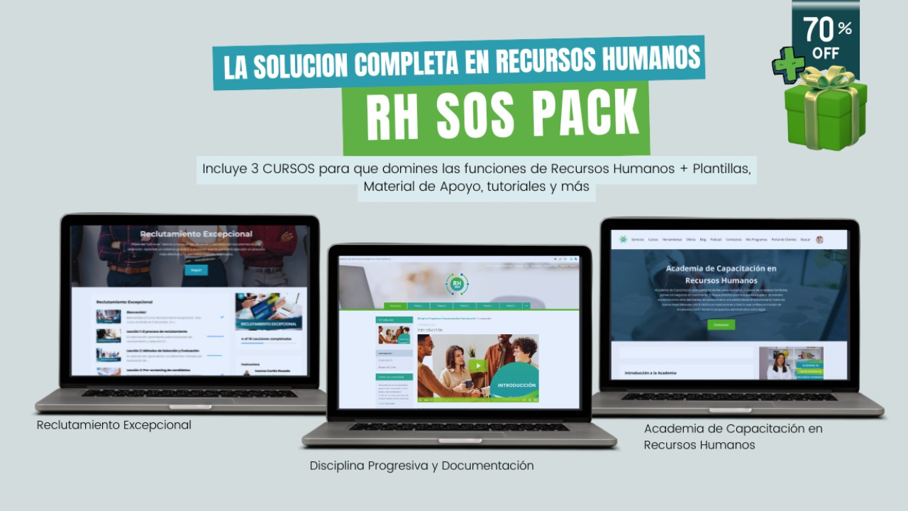 Con este exclusivo paquete, de tres cursos con plantillas y herramientas,  dominarás las áreas clave de Recursos Humanos con un enfoque técnico y práctico que te permitirá gestionar equipos, procesos y cumplimiento legal de manera efectiva.